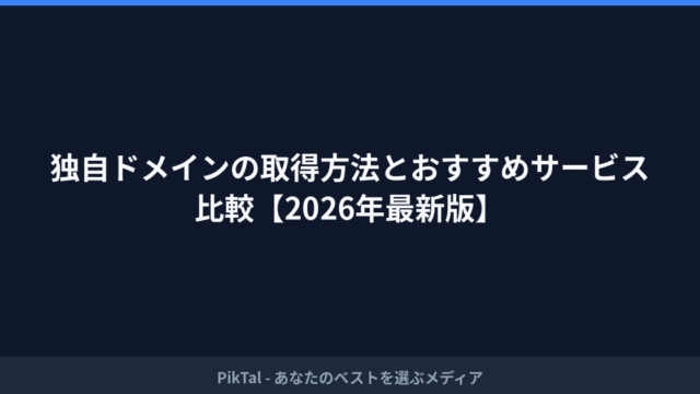 ドメイン・Web制作 独自ドメインの取得方法とおすすめサービス比較【2026年最新版】 独自ドメインの取得方法とおすすめサービス比較【2026年最新版】ブログやWebサイトを始めるにあたって、「独自ドメインを取得したい」と考える方は多いでしょう。しかし、ドメイン取得サービスは数多く存在し、料金体系や機能もさまざまです。どのサー... 2026.03.28 ドメイン・Web制作